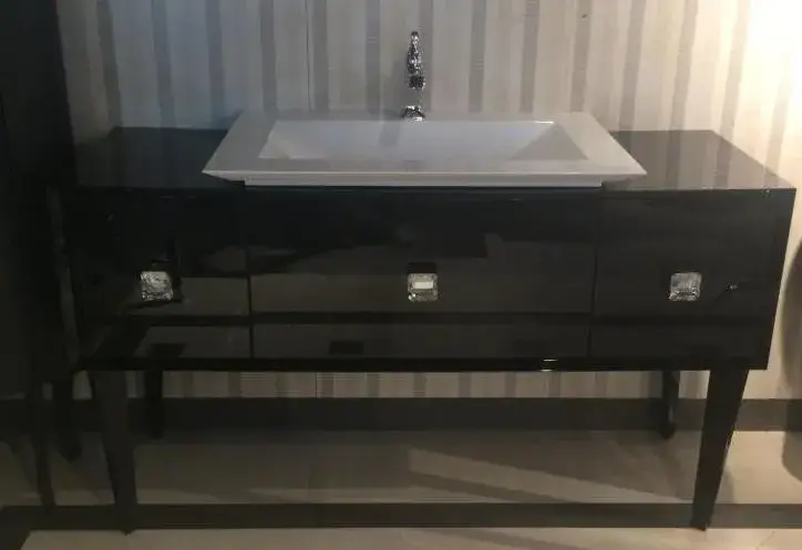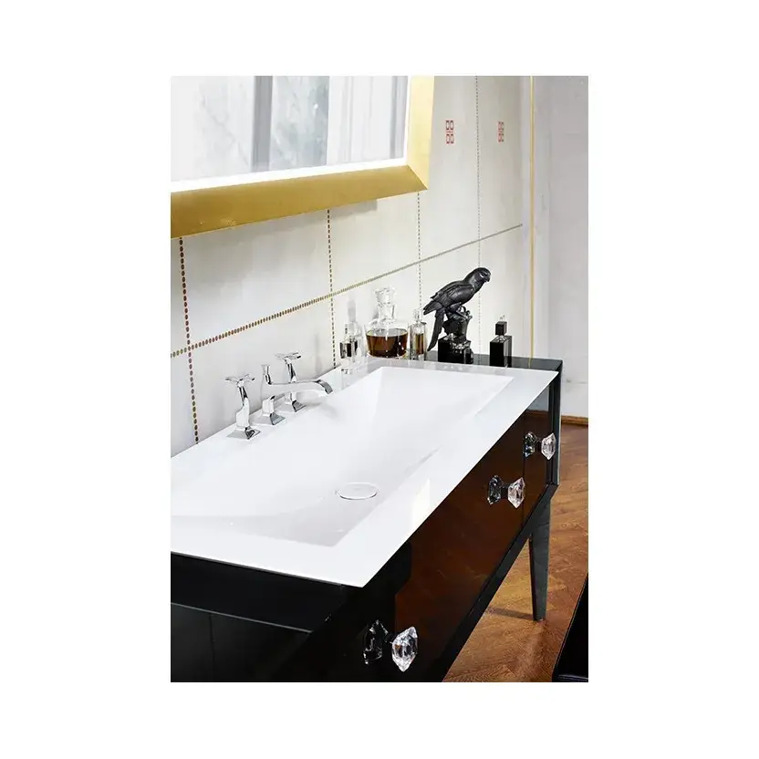 Комплект мебели с раковиной BURGBAD Elysee SELF149 F1004 K0127 G0097 корпус/фасад - черный глянец (F1004/K0127), ручка - хром, кристалл (G0097)