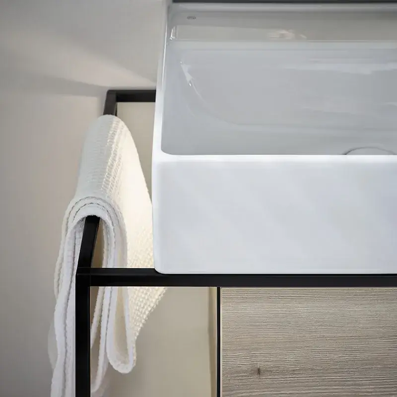 Комплект мебели с раковиной BURGBAD JUNIT SFKQ090L F3151 G0175 K0463 корпус Oak decor flanelle K0463, фронт Flanelle oak decor F3151, металл Black arrodised G0175, раковина белая керамика