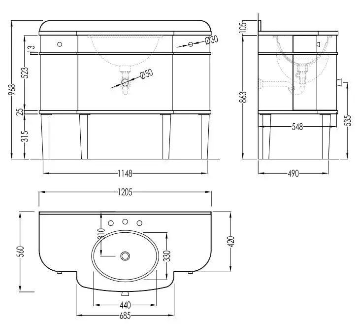 лак cream, столешница с 3 отв. из гранита nero assoluto