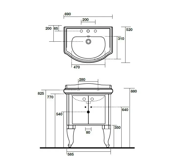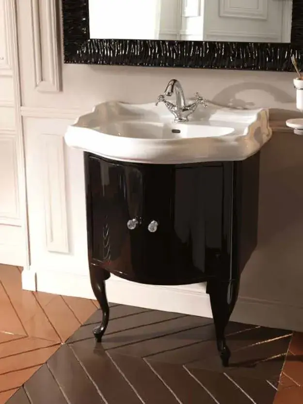 Комплект мебели с раковиной Kerasan Retro 7361K3 (736100 + 736104(2) + 736190) + 104601 отделка черный глянец, ножки - серебро, ручки - хром/кристалл