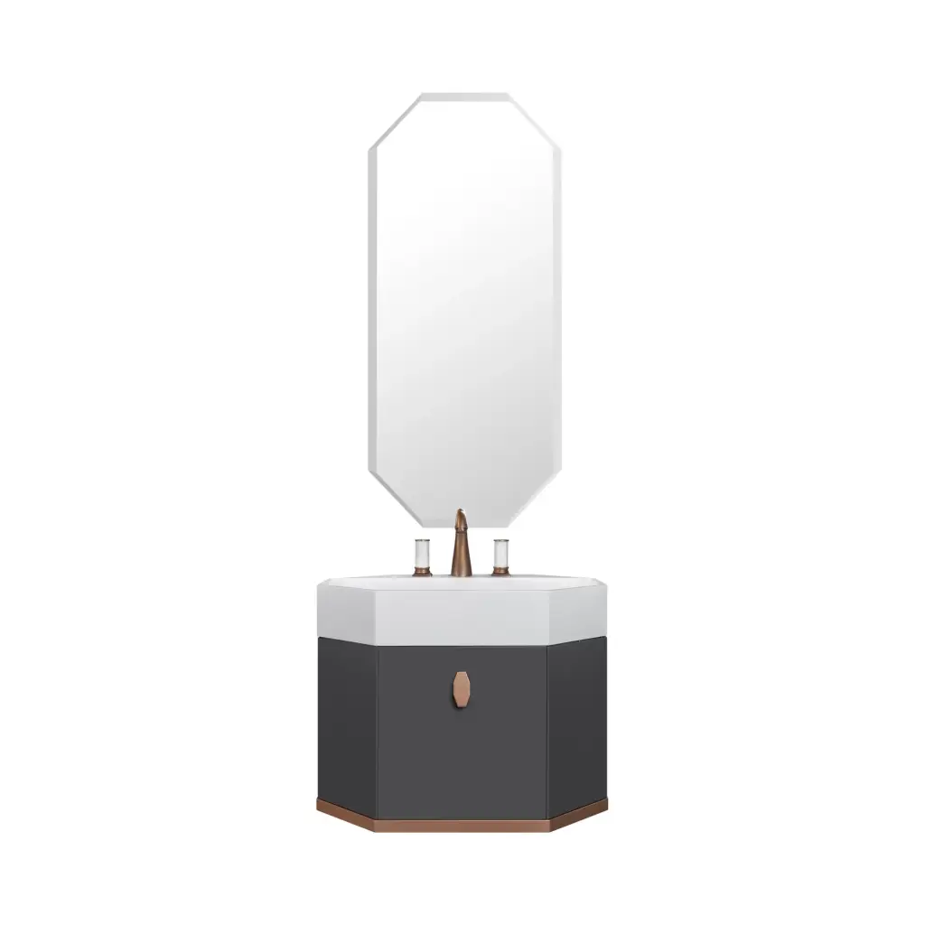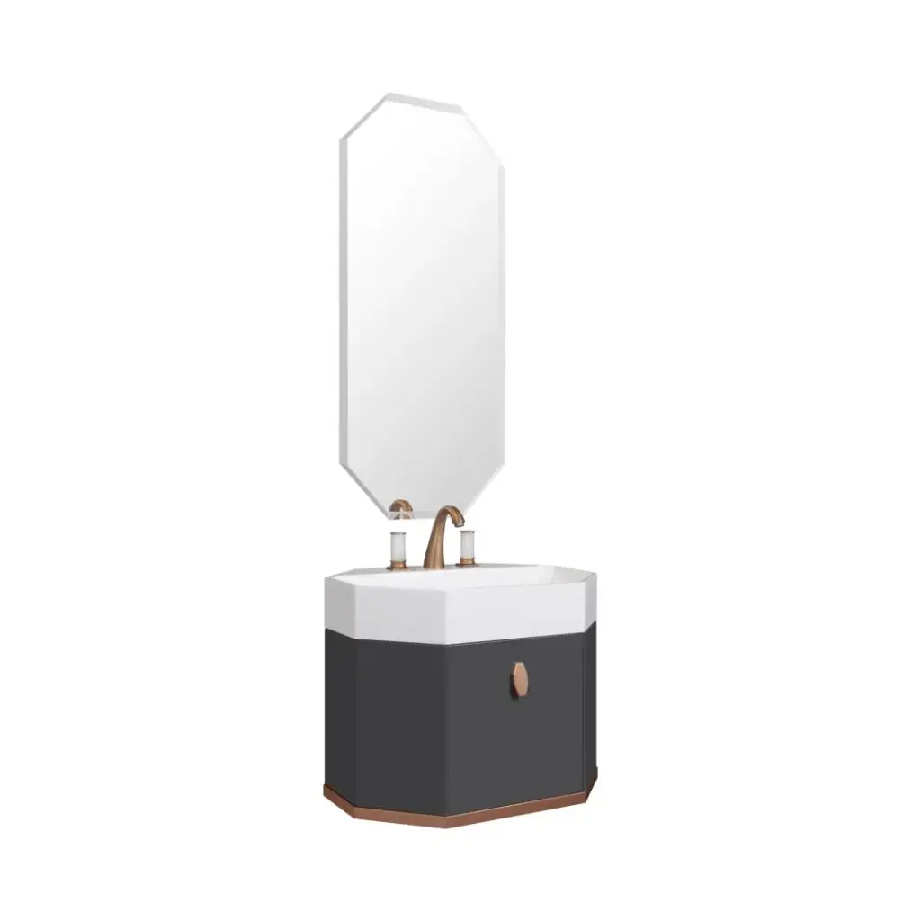 Комплект мебели с раковиной Milldue Dandy 7686+7685*2+7727+7643 лак graffite lucido, satin gold, ручки и профиль oro rosa, раковина mineralmarmo J02