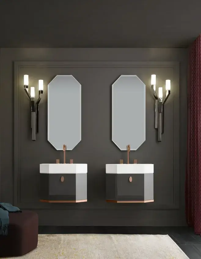 лак graffite lucido, satin gold, ручки и профиль oro rosa, раковина mineralmarmo J02