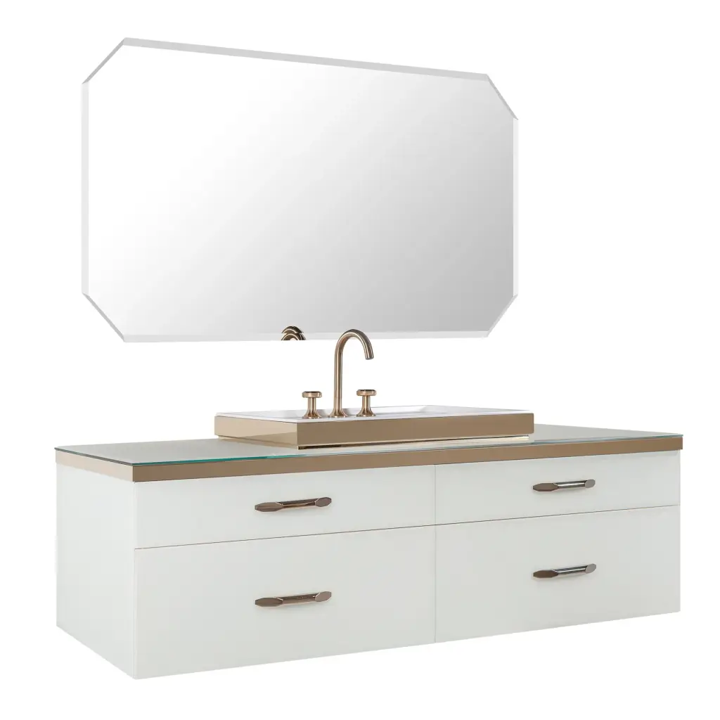 Комплект мебели с раковиной Milldue Hilton 3052+9265+3290.sx+3290.dx+4054+2488*2+7503 matt riso lacquer 09, 91 acciaio bronzo, vetro riso satinato s09, ceramilux bianco glossy - j17