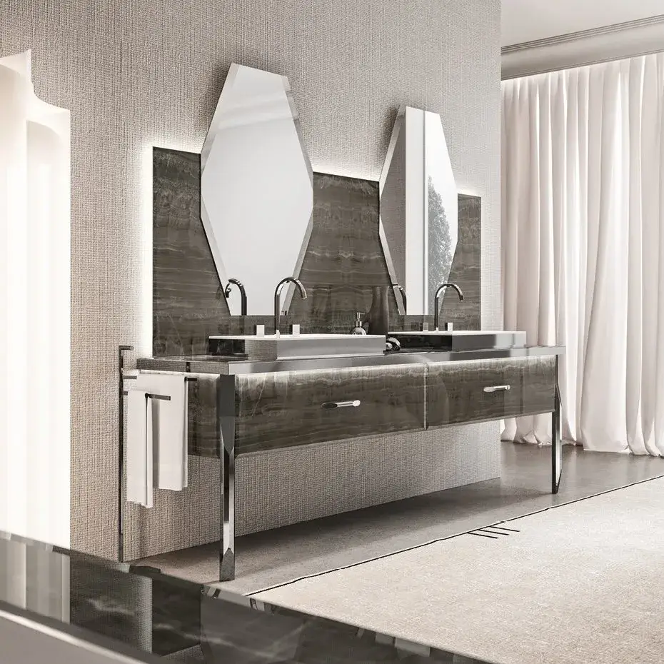 Комплект мебели с раковиной Milldue Hilton 3054*2+3046+9264+5815+5810.sx+5810.dx+5818+2473+2486*2+5819 alabastro bronze 100, polished steel, matt nero lacquer - 22