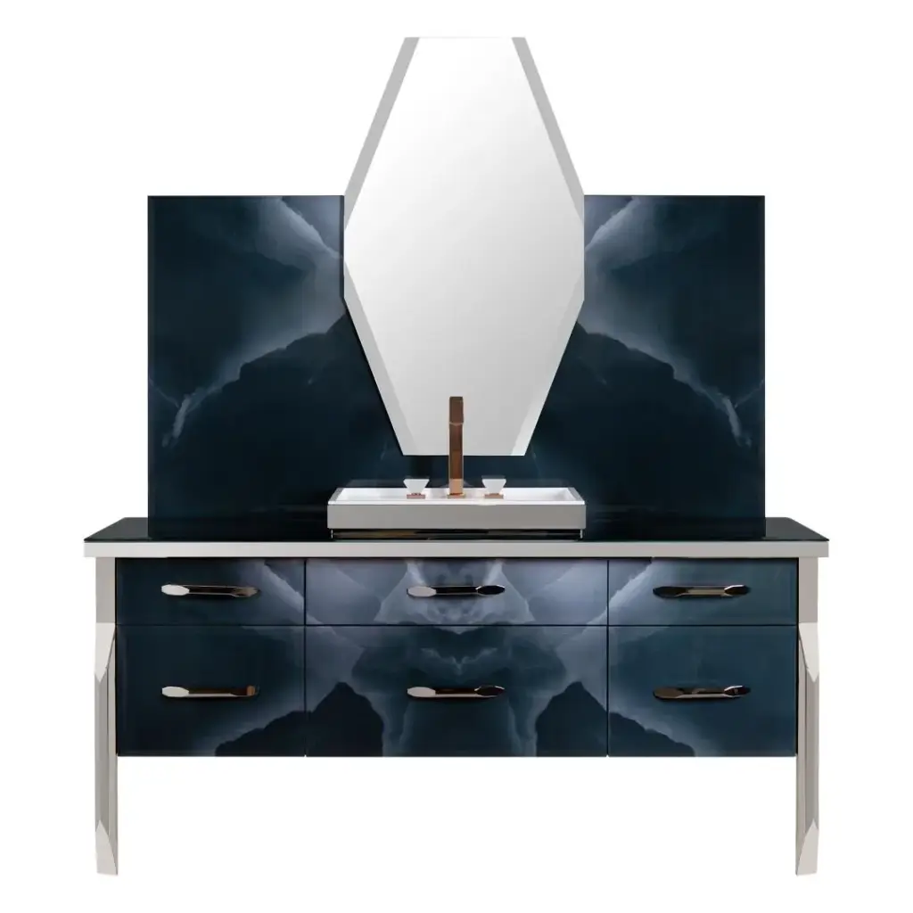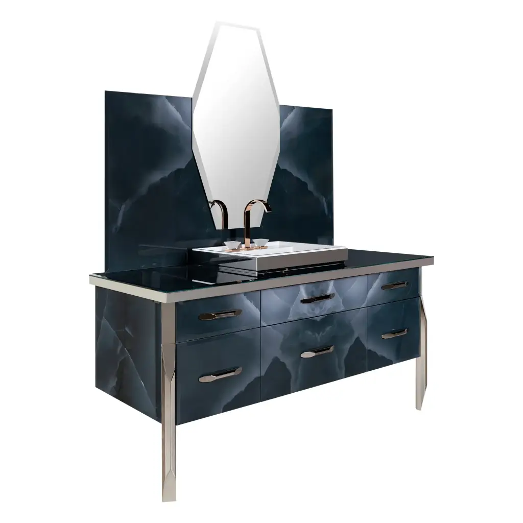 Комплект мебели с раковиной Milldue Hilton 3054*2+3046+9264+5815+5810.dx+5810.sx+5818+2486*2+2473+5819 95 onice smoke, matt nero lacquer 22, polished steel