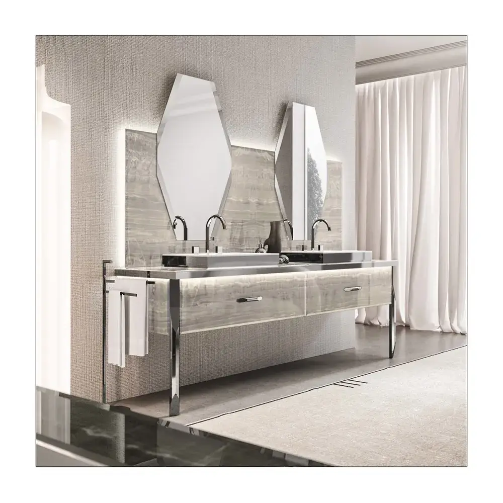 Комплект мебели с раковиной Milldue HITLON 5802*2+5800.DX+5800.SX+9264*2+5815+5818+2474*2+5819*2 ALABASTRO GOLD-96/ACCIAIO LUCIDO-98