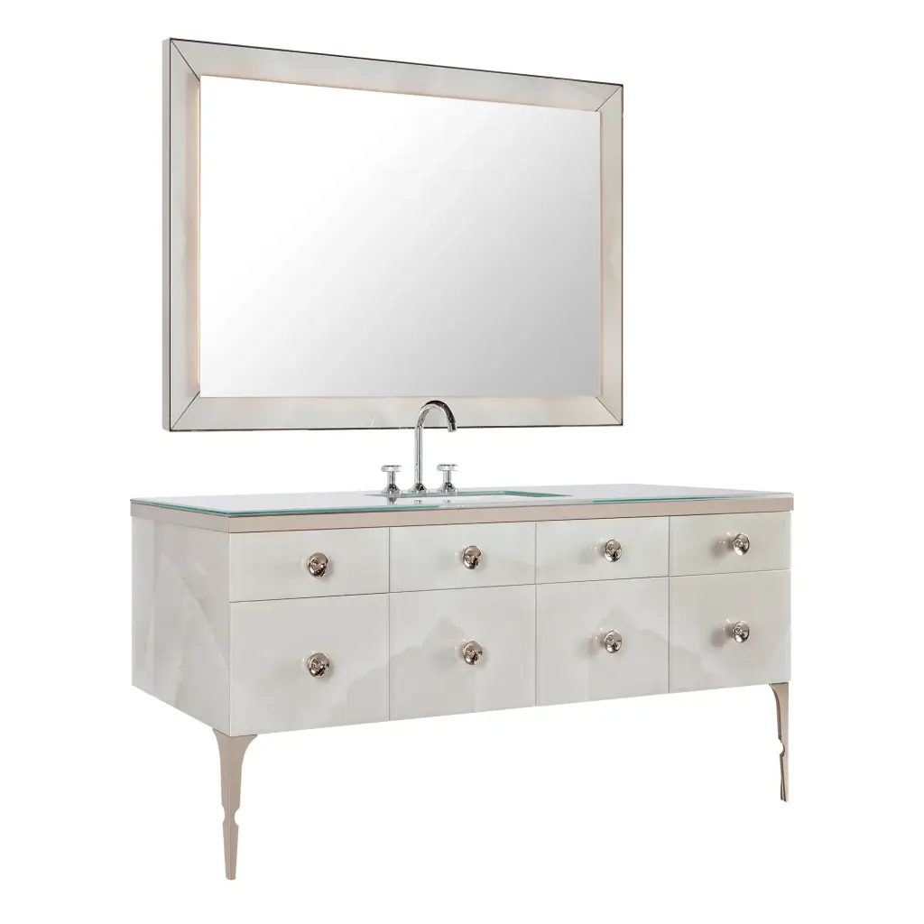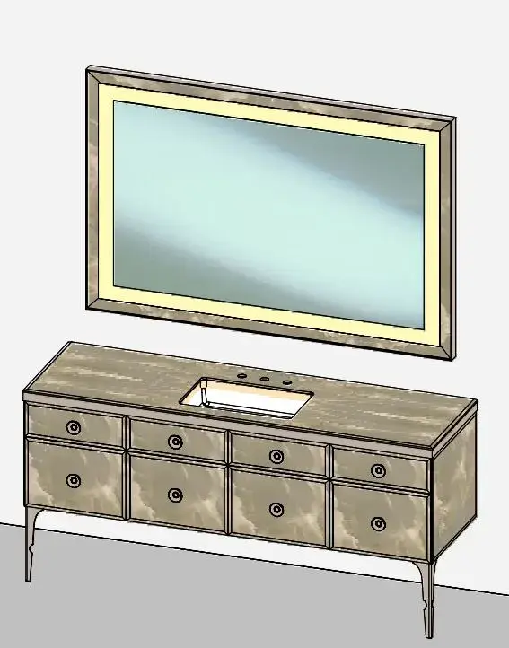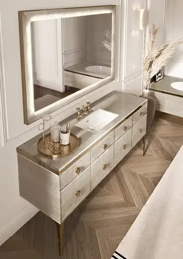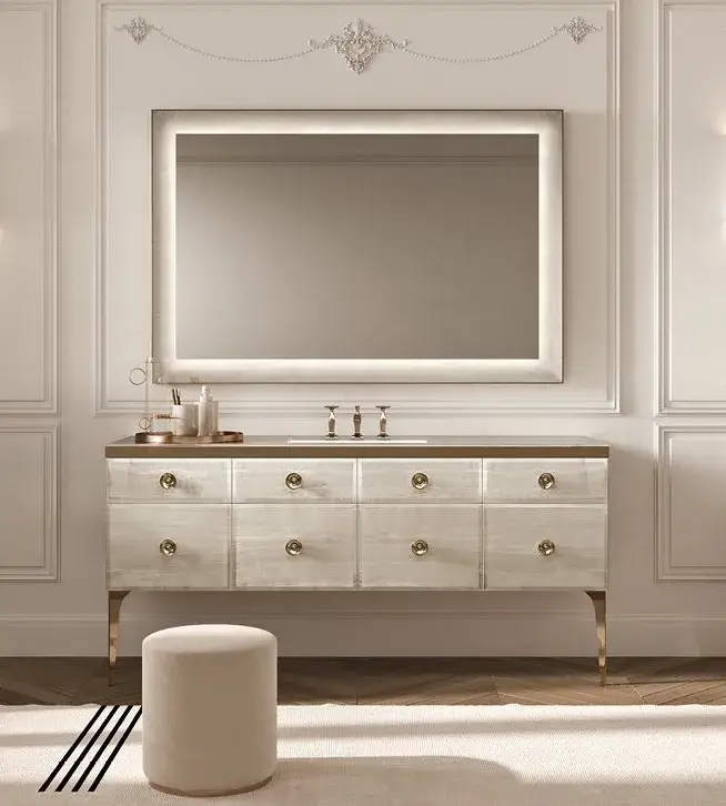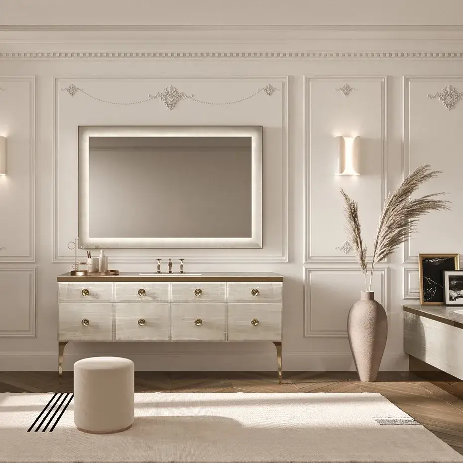 Комплект мебели с раковиной Milldue MAJESTIC 4050+3255*2+7665+5821+3290.sx+3290.dx+5877+2474+2485*2+3470 onice gold 94, acciaio bronzo, matt mandorla lacquer 13