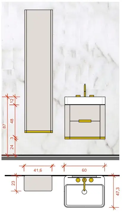 Комплект мебели с раковиной Milldue TAILOR 7569+7555.DX+7555.SX+7518+7644+7649.SX+7647.DX+7647.SX+7519.33 цвет-LACCATO LUNA LUCIDO-119/ORO SATINATO-330