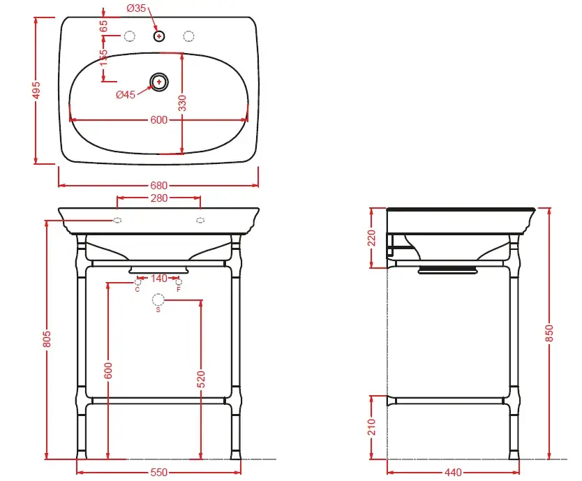 Консоль для ванной комнаты Art Ceram CIVITAS CIA001.77 розовое золото