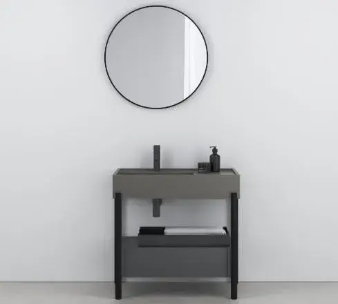 Консоль для ванной комнаты Cielo Plinio 85 PNLA85COLOR.BA+PNC85L.BA+PNSC10.NE+PNST85.NM+CASPT75.NM+SIFN+PIL01NM.BA Matt Black/basalto