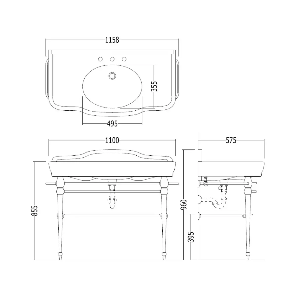 Консоль для ванной комнаты Devon&Devon Melody DEMELODYBI3FCRTR структура - белая керамика, ножки - хром, полка - прозрачное стекло
