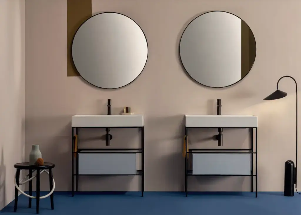 Консоль для ванной комнаты Globo Ceramica T-EDGE / OPI B6R81SE+OP001SAR+OP002SBL+OP003CAR+OP001CAR senape / black matt steel