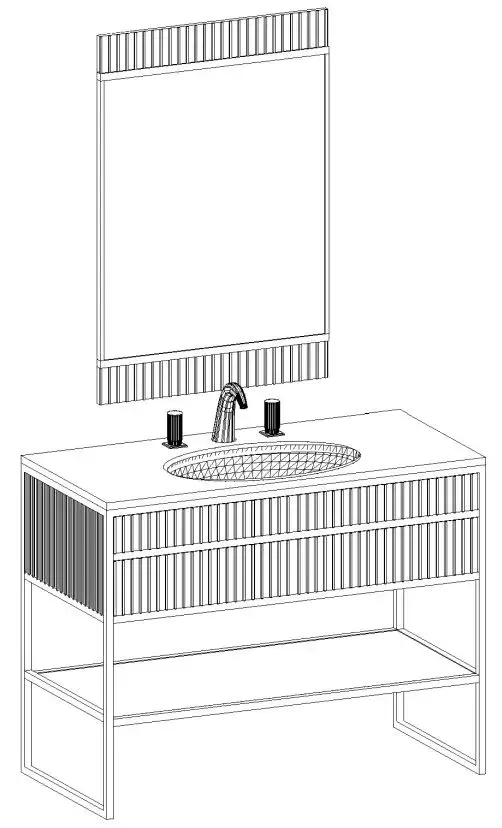 Консоль для ванной комнаты Oasis ACADEMY RIBBED WALNUT 0ACW110OR + 0ACLINB + 0ACTM110LMB3 + 0ACSPW066OR золото, ribbed walnut, мрамор mistic brown, раковина черная керамика