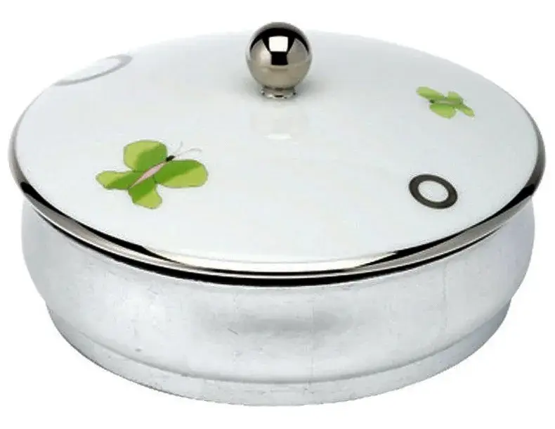 Контейнер с фарфоровой крышкой d18*h10, декор зеленый