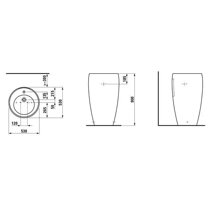 Laufen Alessi One Свободностоящая раковина 530х530х850мм без отв. под смеситель, с покр. LLC, цвет: белый