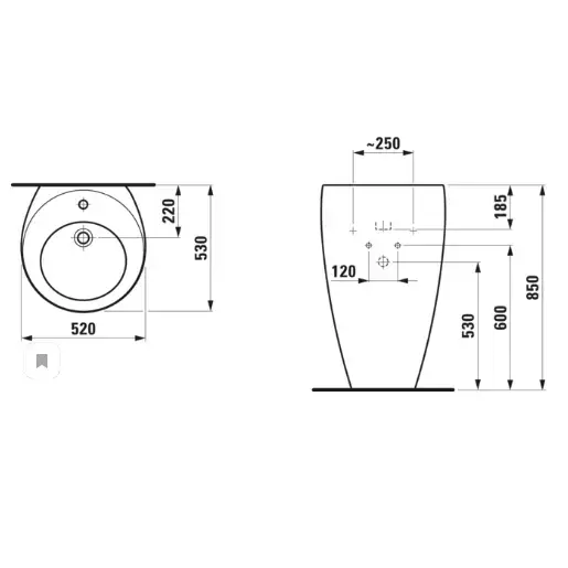 Laufen Alessi One Раковина пристенная 52х53х85см с 1 отв. под смес, крепл к стене, сифон, д/клапан, с покр. LLC, цвет: белый