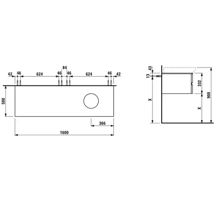 Laufen Alessi One Тумба под раковину 818973, 1600х500х330мм, с 4 выдвиж. ящиками, с сифоном, DX, цвет: орех (Привезем за 3 недели!)