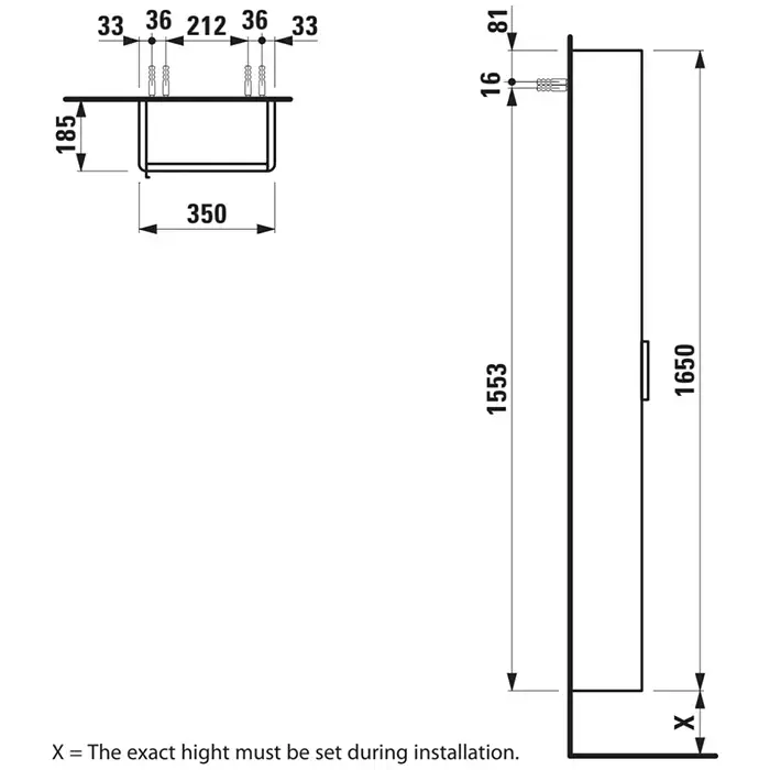 Laufen Base Шкаф 35х33.5х165см., подвесной, 1 дверца справа, цвет: белый глянцевый