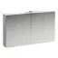 Laufen BASE шкаф зеркальный 1200x185x700 мм, 2 дверцы, с горизонтальным элементом LED-подсветки, 2 стеклянные полки, 1 розетка, белый глянцевый