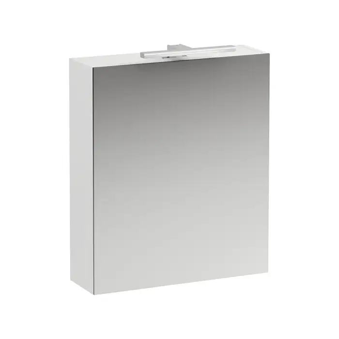 Laufen BASE шкаф зеркальный 600x185x700 мм, 1 дверца, петли справа, с гориз.элементом LED-подсв., 2 стекл. полки, 1 розетка, белый матов