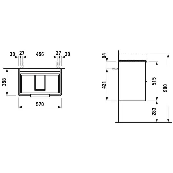 Laufen Base База под раковину 8.1895.9 подвесная 570х360х530 мм, с 2 ящиками, цвет белый матовый