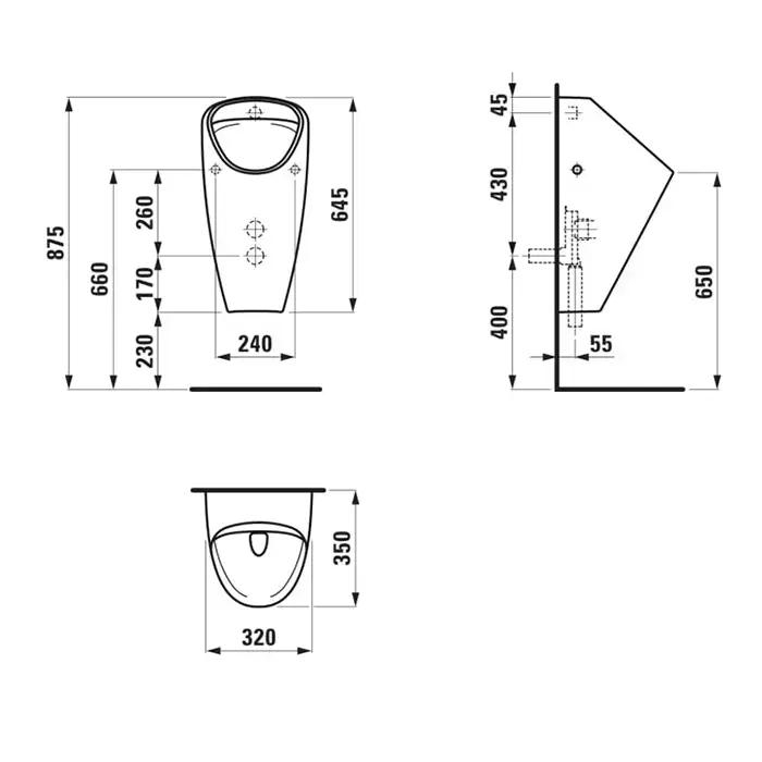 Laufen Caprino Писсуар безободковый RIM с внутренним подв. воды, с креплением (без сифона 8.9418.1 и впускного патрубка), цвет белый