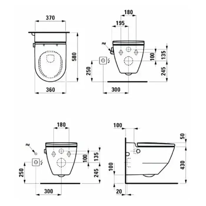 Laufen Cleanet Navia Унитаз-биде подвесной 580х370х380 мм, безободковый с съемным сиденьем (микролифт), цвет белый c покрытием LCC (АКЦИЯ со склада)