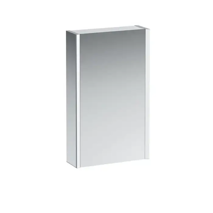 Laufen Frame 25 Зеркальный шкаф 45x15x75см., алюминий, 1 дверца с зеркалом с 2х сторон, DX, сенс. выкл., 2 розетки, 2 верт-х эл-та LED-подсветки (регул-ая яркость), с окружающим освещением (внизу), цвет: белый