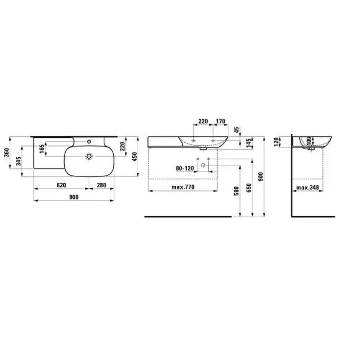 Laufen INO Раковина 90х45х12 см, 1 отв., полка слева, цвет: белый