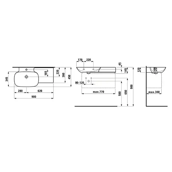 Laufen INO Раковина 900х450х120мм без отв. под смеситель, полка справа, цвет: белый