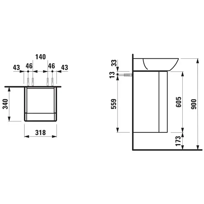 Laufen INO Тумба с раковиной, 28х31х60.5см, с 1 дверцей, с сифоном, с 4 полками, SX, подвесная, покрытие LLC, цвет: темный орех