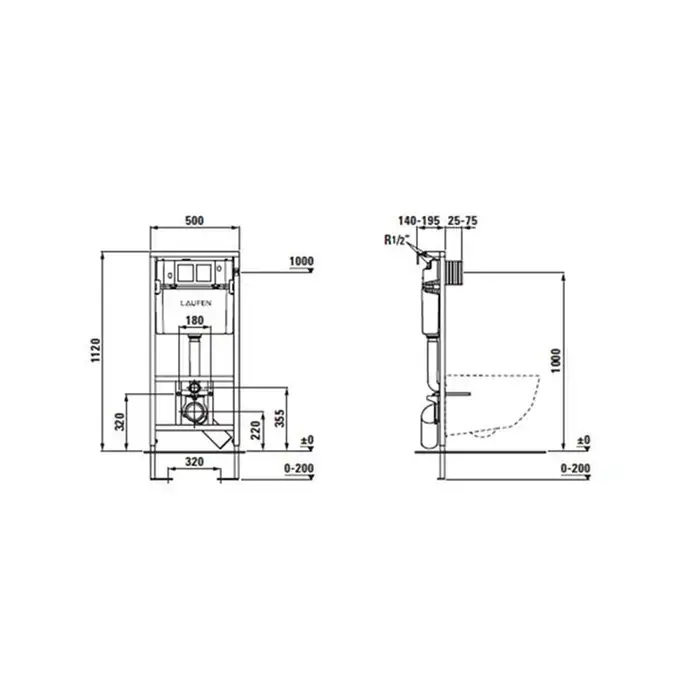 Laufen Installation System Инсталляция для унит, с встроенн трубой подачи воды для RIVA/NAVIA, двойной слив 4,5/3 л, регул.до 6/3 л (ВРЕМЕННО не пост)