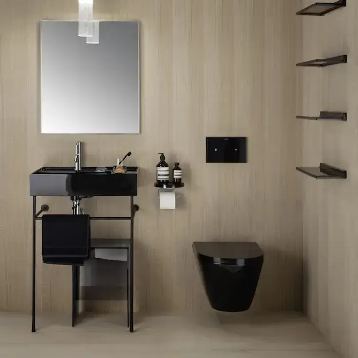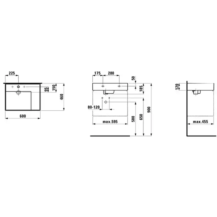 Laufen Kartell Раковина 600х460х120мм без перелива, с 1 отв. под смеситель, со скр сливом, полка справа, цвет: черный глянцевый