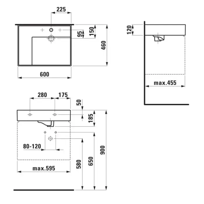 Laufen Kartell Раковина 60х46х12см, 1 отв., со скрытым сливом, полка слева, цвет: белый