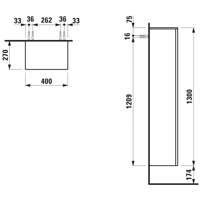 Laufen Kartell Шкаф подвесной, 400х270х1300мм, с 1 дверцей, 4 стек. полки, SX, цвет: серая галька