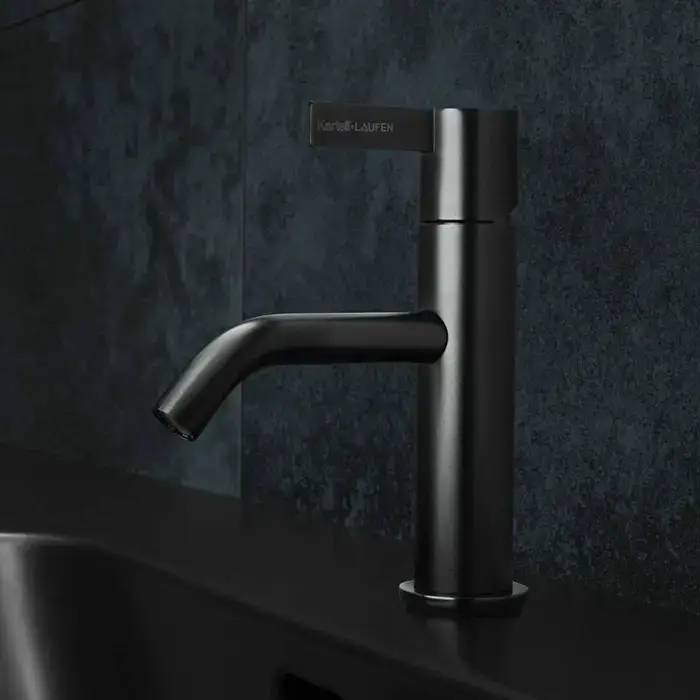 Kartell by laufen смеситель для раковины однорычажный, фиксированный излив 115 мм, без донного клапана, pvd черный титан