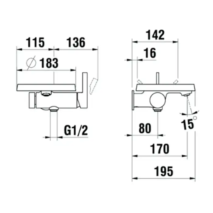 Laufen Kartell Смеситель для ванны настенный, на 1 отв, с ручным душем, излив 170мм, цвет: хром (ВРЕМЕННО не поставляем!)