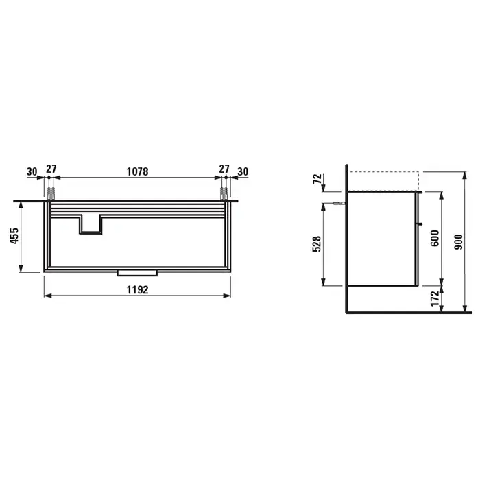 Laufen Kartell Тумба под раковину 810332, 1190х455х615мм, с 2 выдвиж. ящиками, с сифоном, цвет: белый глянцевый