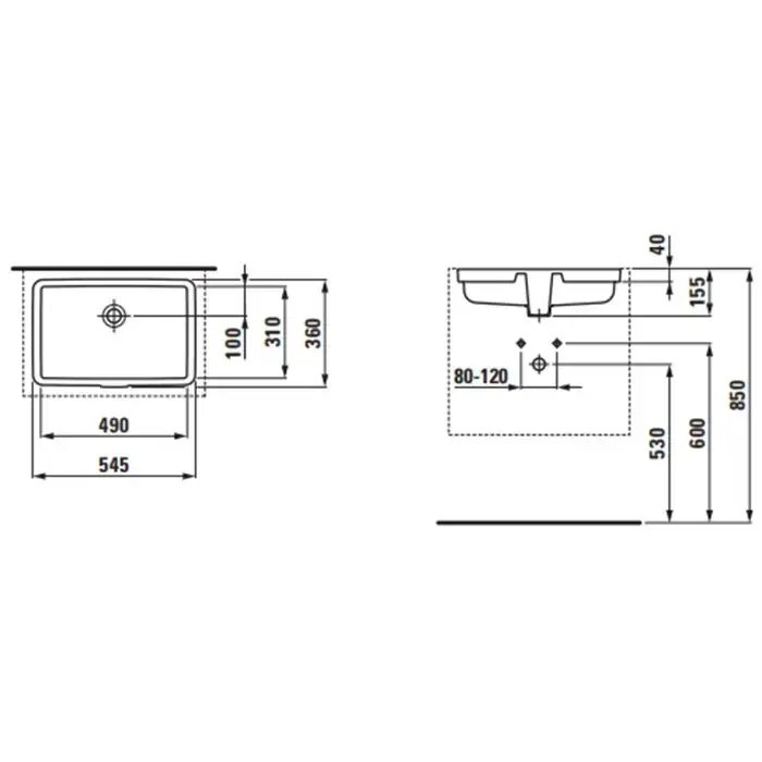 Laufen Living City Раковина 545x360x155 мм без отв. под смеситель, цвет: белый