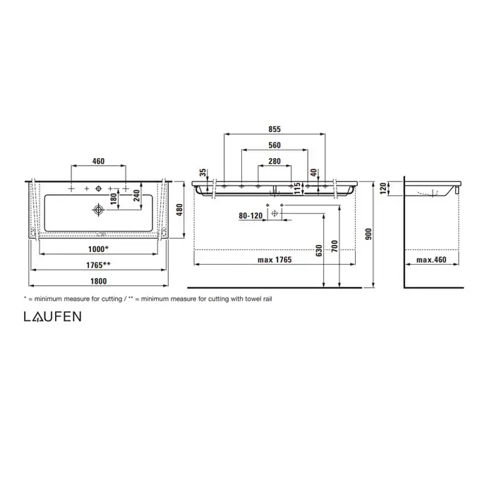 Laufen Living Square Раковина 180x48см, с 1 отв., цвет: белый