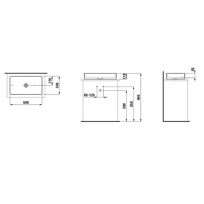 LAUFEN LIVING SQUARE Раковина прямоугольная 600х340х110 мм без отв. под смеситель,без перелива, цвет: белый с покрытием LCC Laufen Clean Coat