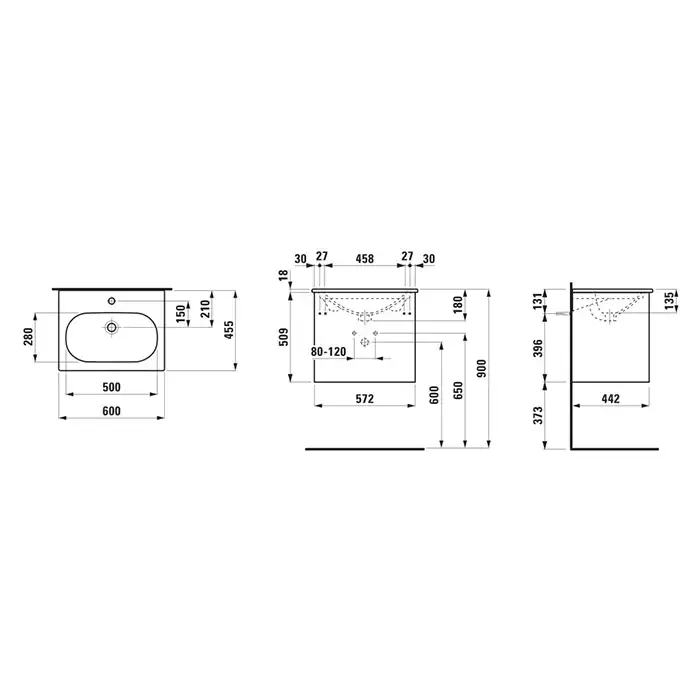 Laufen Lua КОМПЛЕКТ: база под раковину, 600х455хh527 мм, с раковиной 600 мм с 1 отв для смесит., 2 ящика, вкл.органайзер для ящиков, белый матовый