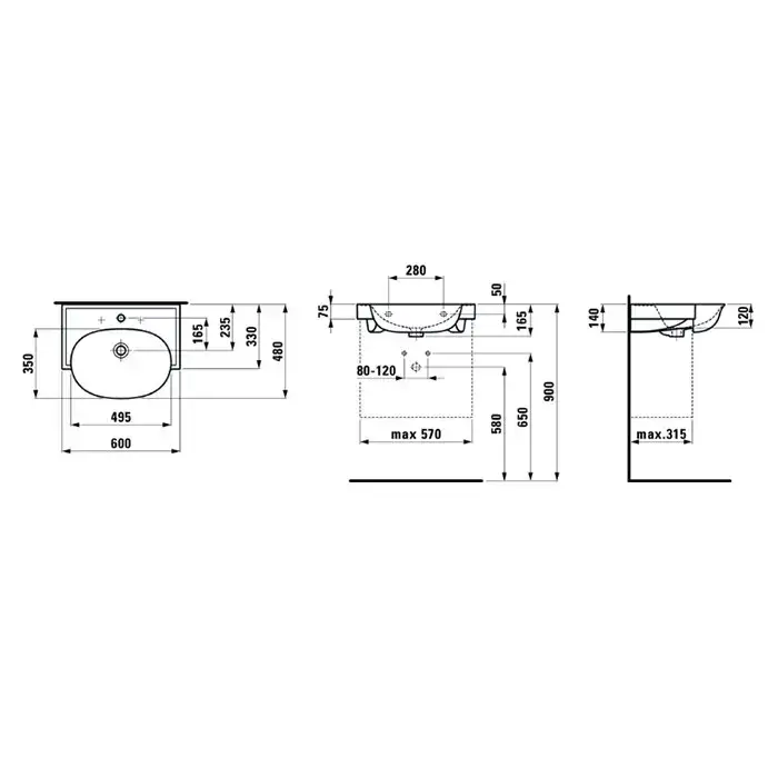 Laufen New Classic Раковина 60х48х16.5 см, без отв., накладная, с переливом, цвет: белый