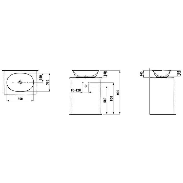 Laufen New Classic Раковина-чаша овальная 550х380х145 мм, без отв под смеситель, без перелива, цвет белый матовый