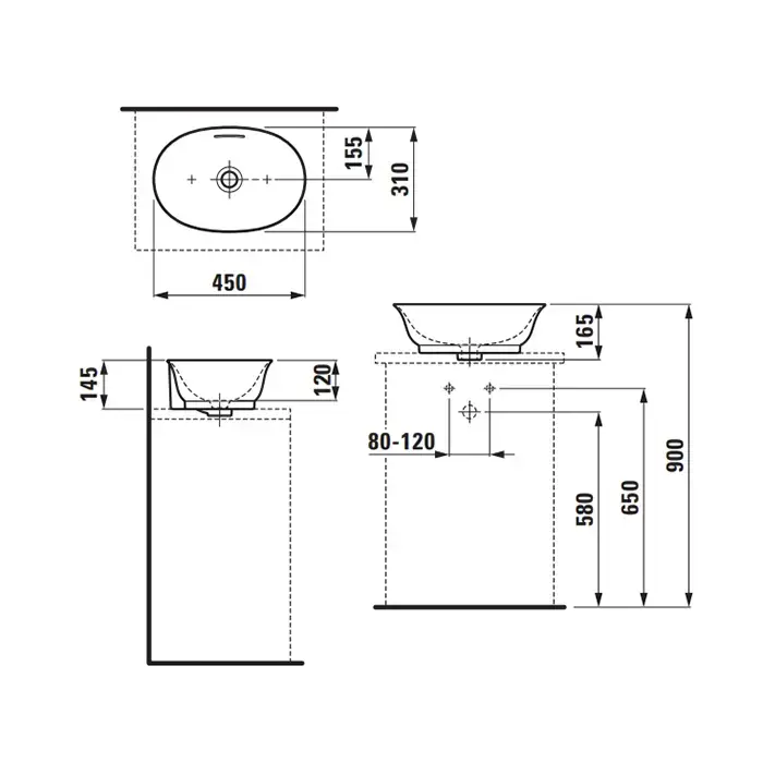 Laufen New Classic Раковина-чаша овальная накладная 450х310х145 мм, без отв под смеситель,с переливом, цвет белый глянец