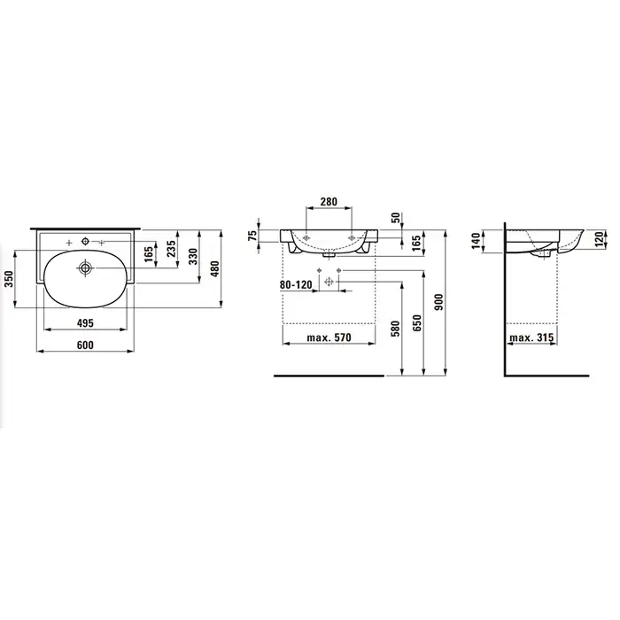 Laufen New Classic Раковина накладная 60х48х7.5см., с 3 отв., с переливом, с покрытием Clean Coat LCC, цвет: белый