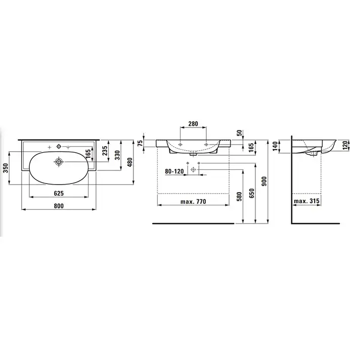 Laufen New Classic Раковина накладная 80х48х7.5см, с 3 отв., без перелива, цвет: белый
