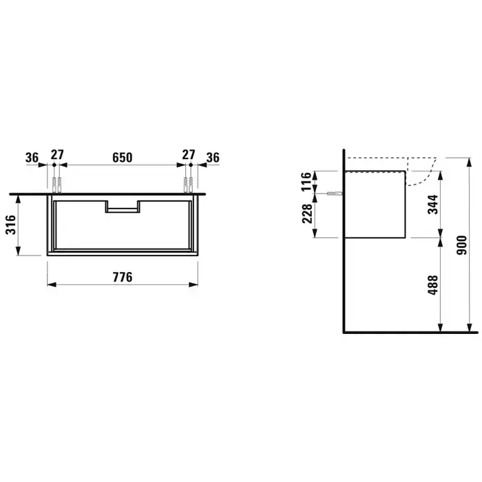 Laufen New Classic База под раковину подвесная , 780х320х340 мм, 1 ящик, цвет серый (для раковины 813855)