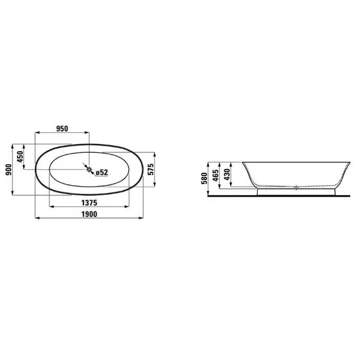 Laufen New Classic Ванна 1900x900x580мм, свободностоящая, овальная, материал: Sentec, цвет: белый матовый (ВРЕМЕННО не поставляем!)