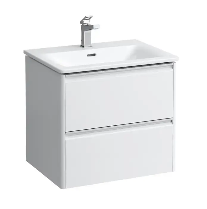 LAUFEN PALACE Комплект мебели 600х450х545 мм., с раковиной Slim, 2 ящика, органайзер для ящика, ручка анодированный алюминий, цвет белый матовый